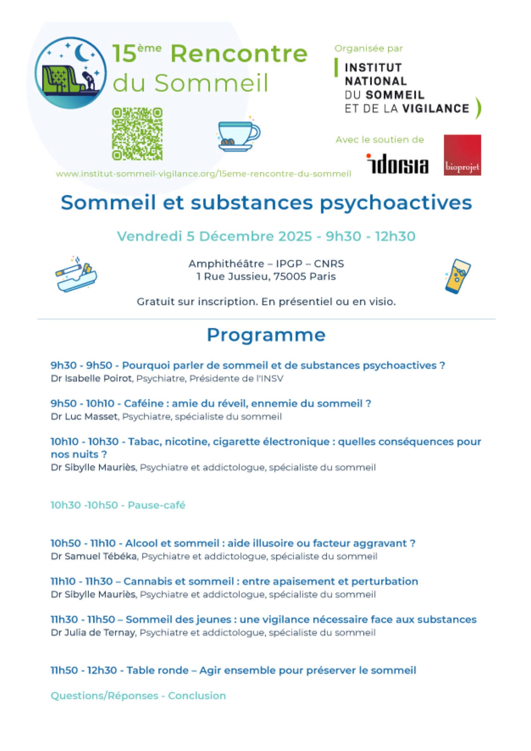 15ème Rencontre du Sommeil : sommeil et substances psychoactives
