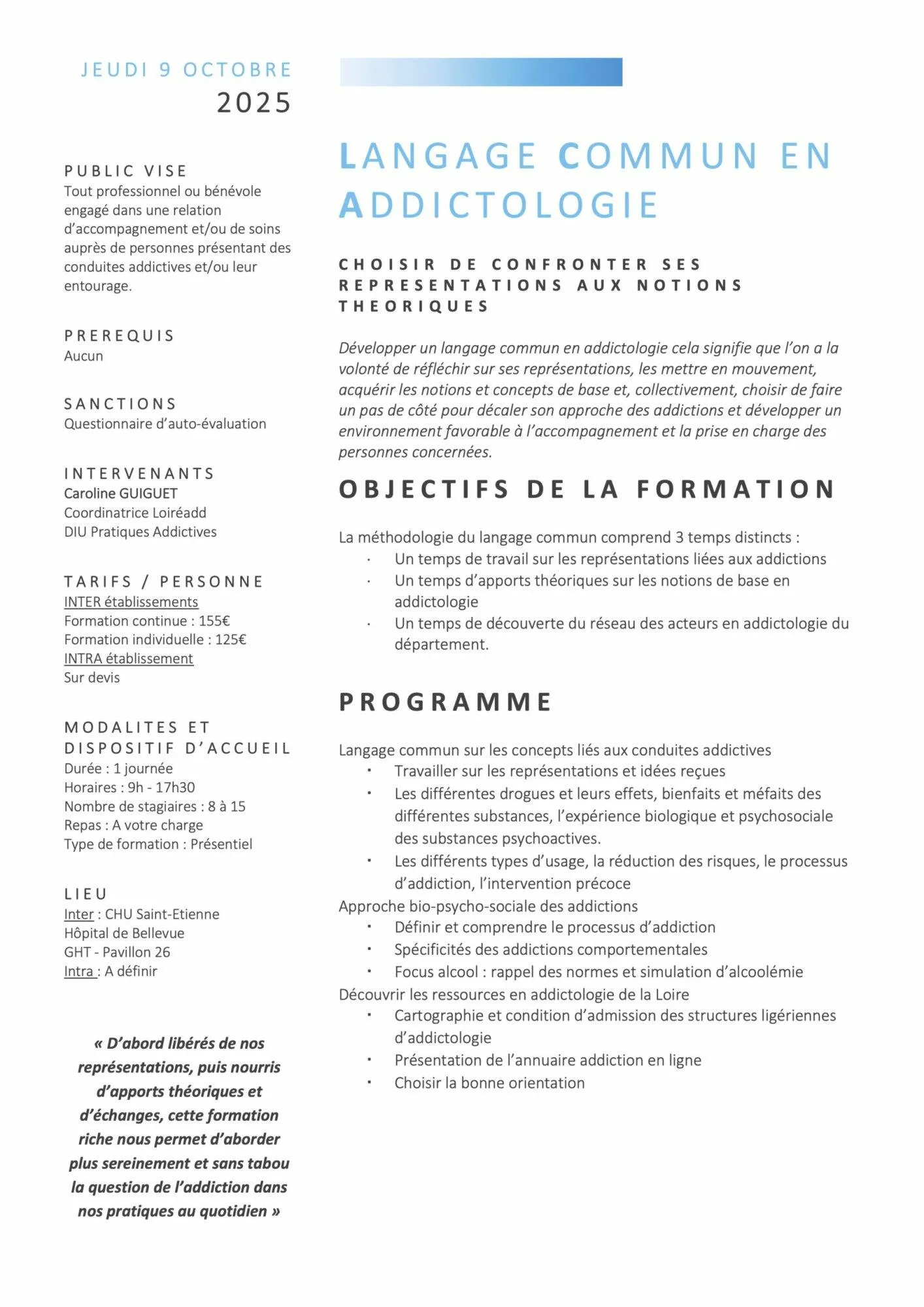 FORMATION LANGAGE COMMUN EN ADDICTOLOGIE 9 OCTOBRE 2025 – ANNULÉ