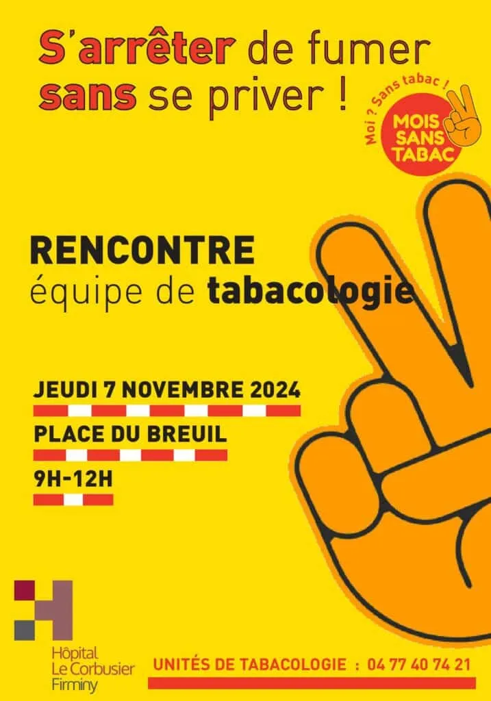 Le 7 Novembre, venez échanger avec l’équipe de tabacologie (infirmier, psychologue, diététicienne) de l’hôpital, vous proposera des solutions pour arrêter de fumer sans se priver !